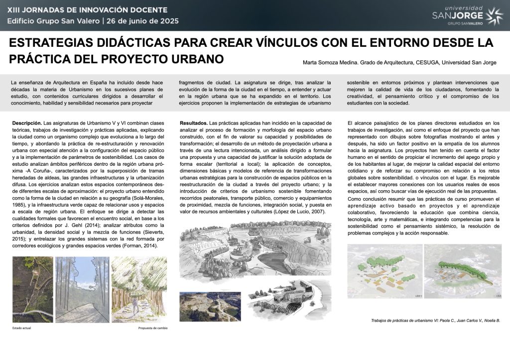 La enseñanza de Arquitectura en España ha incluido desde hace décadas la materia de Urbanismo en los sucesivos planes de estudio, con contenidos curriculares dirigidos a desarrollar el conocimiento, habilidad y sensibilidad necesarios para proyectar fragmentos urbanos. La asignatura se dirige, tras analizar la evolución de la forma de la ciudad en el tiempo, a entender y actuar en la región urbana que se ha expandido en el territorio. Los ejercicios proponen la implementación de estrategias de urbanismo sostenible en entornos próximos y plantean intervenciones que mejoren la calidad de vida de los ciudadanos, fomentando la creatividad, el pensamiento crítico y el compromiso con la sociedad de los estudiantes.